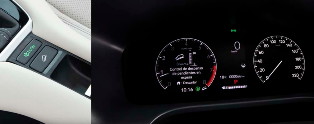 La tecnología ECO Assist proporciona la máxima economía de combustible, a la ves que reduce emisiones de gases contaminantes. Solo se debe presionar el nuevo botón de ECON y el tablero se iluminará de verse y se comenzará a conducir de manera ecológica.